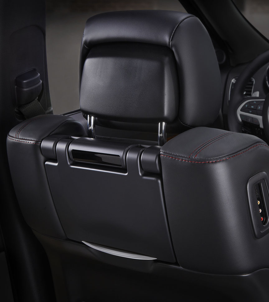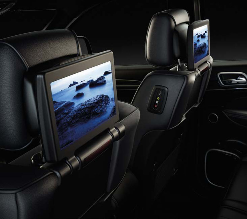 Front-seat occupants aren't the only ones who benefit from high-tech displays in the new 2014 Grand Cherokee. Second-row passengers can treat themselves to video entertainment via an available seatback Blu-ray video system with 9-inch screens. This new system will play standard DVDs as well as Blu-ray discs, and has inputs for high definition media interface (HDMI) cables or RCAs for each screen integrated into the seat backs. Wireless headphones are included as is a wireless remote. In addition to Blu-Ray, the system will play video DVDs, audio DVDs, audio CDs, MP3 audio disc, and video CDs. There are plug-in jacks on the media hub to show video directly from a video camera, connect video games for display on the screen, and play music directly from a MP3 player. The audio may be played through the vehicle speaker system or through wireless headphones. However, front seat video playback is not available. In addition, the video screens do not operate independently, they both play the same video. The rear seat DVD system will be an available option on the Limited, Overland, Summit and SRT models. The Blu-ray player is mounted in the center console. Availability will not be until late November 2013 (start of production). The MSRP is $1,995.00.