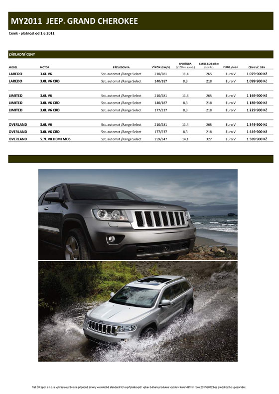 Czech Republic - 2011 Grand Cherokee pricing and specs brochure. 5-pages. Issued May 2011. PDF (450 KB)