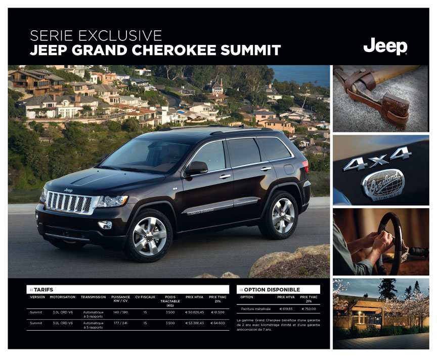 Belgium - 2012 Grand Cherokee sales brochure (Overland Summit). 2-pages. Issued January 2012. PDF (2.87 MB)