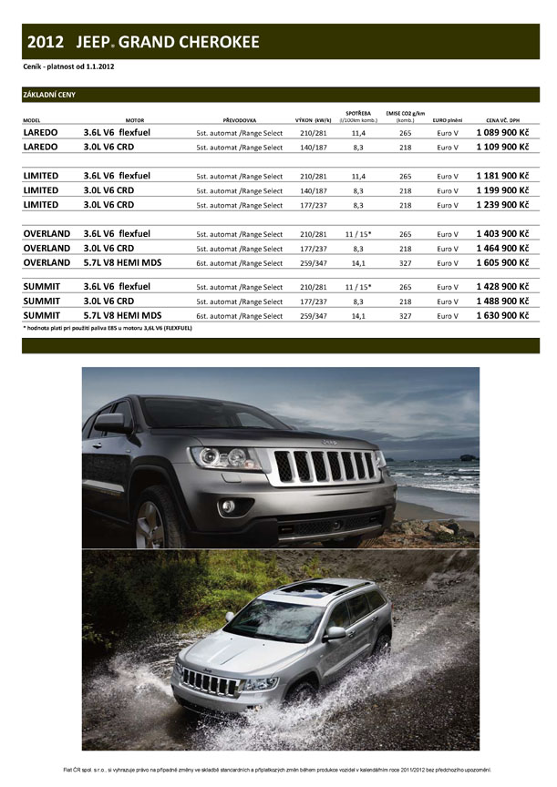 Czech Republic - 2012 Grand Cherokee pricing and specs brochure. 5-pages. Issued January 2012. PDF (336 KB)