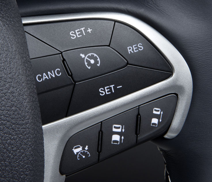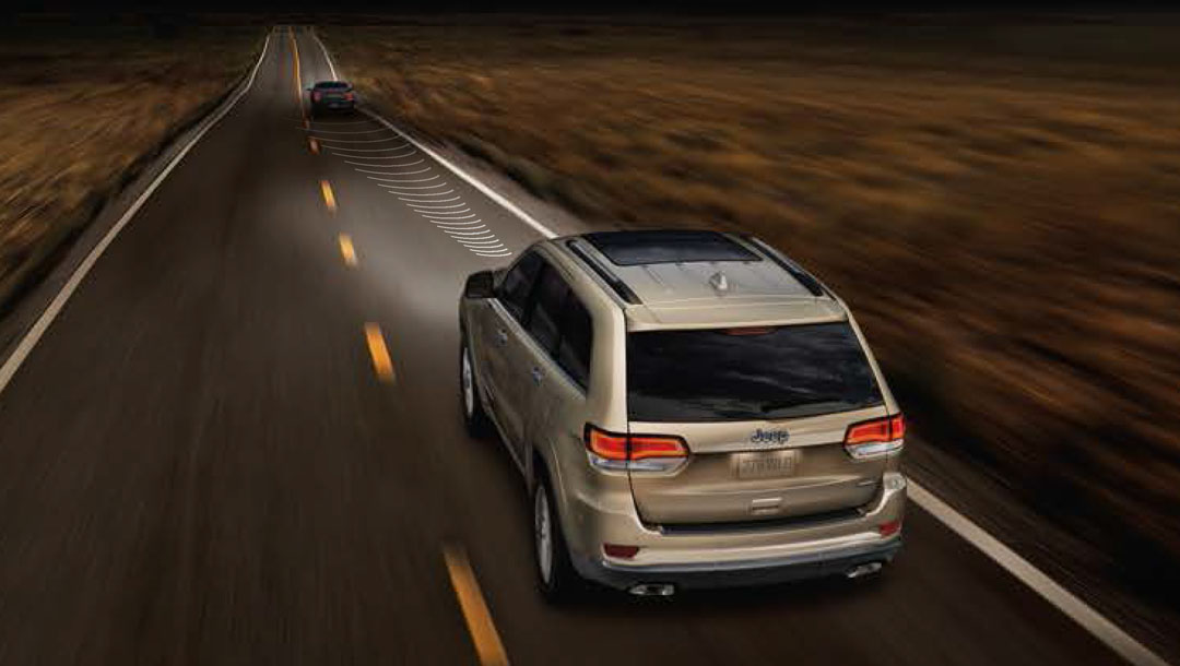 Adaptive Cruise Control w/Stop is significant for its capacity to bring the vehicle to a complete stop without driver intervention in certain conditions. Radar and video sensors identify the locations of vehicles traveling ahead of the 2014 Jeep Grand Cherokee. The sensors also help ensure the vehicles are separated by a gap determined by the driver. If the gap is dramatically breached, the ESC system can aggressively deploy the vehicle's brakes to affect a full stop, even if the driver never touches the brake pedal. To resume travel, the driver need only press a button on the steering wheel or tap the accelerator pedal.