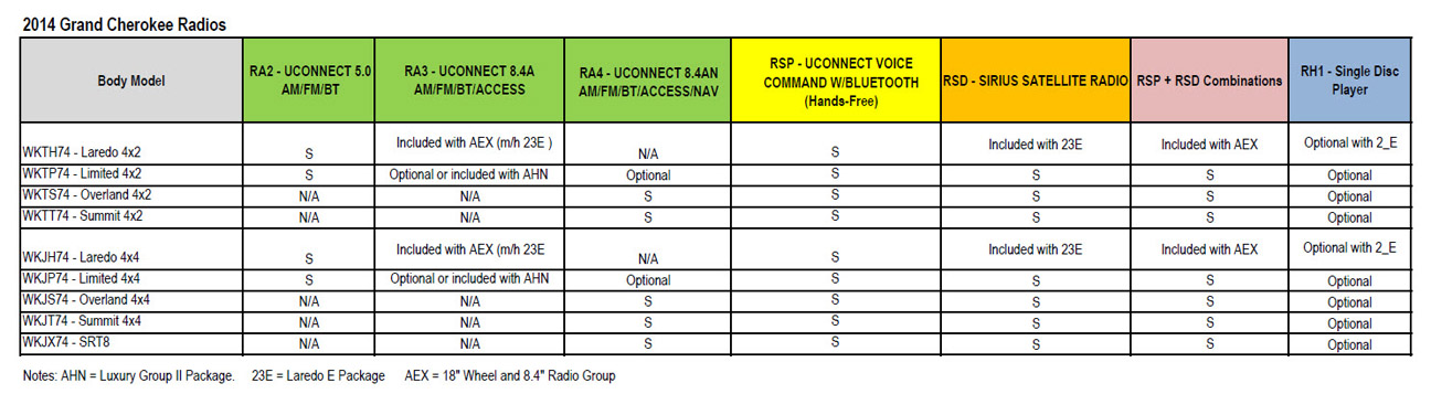 2014-2017 Grand Cherokee factory radios