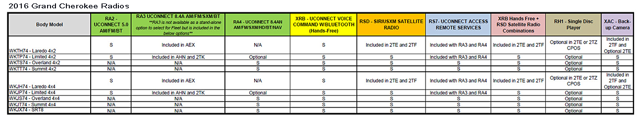 | 2014-2017 factory radios | Additional information and notes |