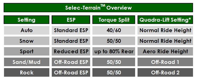 The Selec-Terrain system has been refined for 2014 and offers five different driving conditions to